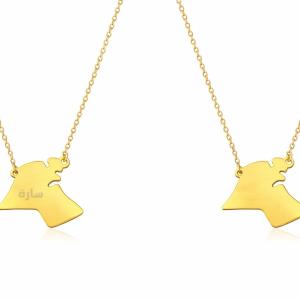 Customized Kuwait Map Necklace – Gold Plated - Laser name engraving